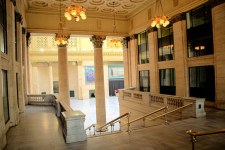Springfield is the state capital of Illinois, and along the main route from Chicago to St Louis. Accessible by Amtrak and Greyhound.